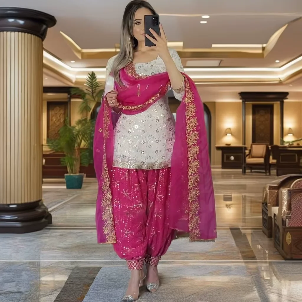 Empress Shine Bollywood Style Heavy 5mm Sequin Embroidery Dhoti Suit Salwar Dupatta Faux Georgette for Summer Winter Indian